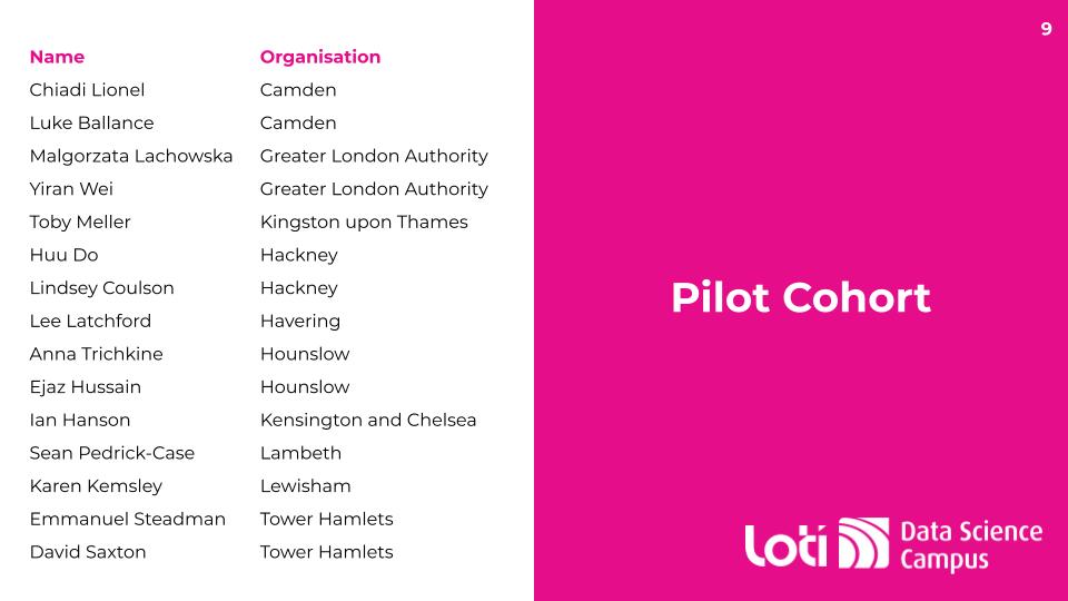 LOTI, in collaboration with the Office of National Statistics (ONS) Data Science Campus are developing a Data Science Bootcamp for officers in London local government. The list of the 15 successful applicants who secured a place on the pilot cohort is available here.